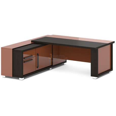 Стол руководителя с тумбой-греденцией L-116пр/л №18300 - кромка: пвх, покрытие: ламинат, стекло: бронза сатинат в алюминиевом профиле, цвет профиля - коньяк.ШxГxВ | 203,5х201,6х75 |