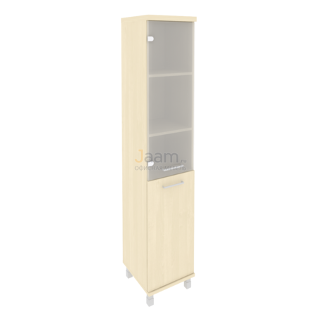 Офисный шкаф высокий узкий левый KSU-1.2 Л №27077 - столешница: дсп 36 мм, кромка: пвх, покрытие: ламинат, стекло: матовое.ШxГxВ | 40х43х206 |