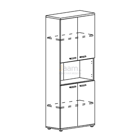 Офисный шкаф для документов 4-дверный с открытой нишей А4 9374 №48641 - столешница: лдсп 25 мм, кромка: пвх 2 мм, покрытие: ламинат.ШxГxВ | 78x36.4x193 |