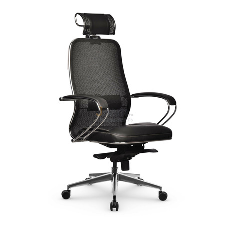 Кресло для руководителя SAMURAI SL-2.041 MPES ЧЕРНЫЙ ПЛЮС №51148 - высота спинки: 83 см, высота от пола до сиденья: 40-50 см, диаметр крестовины: 71 см, механизм качания без фиксации, регулировка жесткости качания по весу сидящего, ограничения по весу: 120 кг, основание: металл, каркас: немонолитный, производитель: россия и снг, подголовник, подлокотники, поясничный упор, регулировка глубины сидения, регулировка по высоте, резиновые колеса для паркета, сетка в спинке, синхромеханизм, в наличии в Вологде.