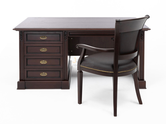 Стол письменный L156 106 101 WAL №6311 - столешница: дсп шпон 38мм мм, кромка: массив, покрытие: шпон, стекло: прозрачное.ШxГxВ | 56x95x77 |